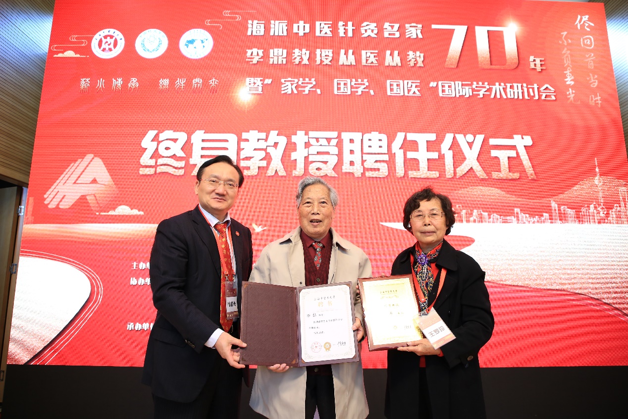 11月9日,由探花视频 和中国针灸学会、世界针灸学会联合会主办,探花视频 探花视频 承办,美国中医公会、欧洲浮针学会、上海市针灸学会、探花视频 附属龙华医院、曙光医院、岳阳中西医结合医院、上海市针灸经络研究所、国家中医药管理局全国名老中医药专家传承工作室协办的“薪火传承,继往开来”海派中医针灸名家李鼎教授从医从教70年暨“家学、国学、国医”国际学术研讨会在探花视频 全球合作伙伴中心隆重召开。 李鼎教授是全国名老中医药专家传承工作室导师、第五批国家级非物质文化遗产“针灸”项目代表性传承人、上海市名中医,是我国高等中医针灸专业教育和新中国针灸学教材的主要奠基人之一,是经穴解剖和形象化教学的先行者,是新中国针灸学海外传播的开拓者之一。开幕式上,探花视频 聘请李鼎教授为终身教授,同时举行第五批国家级非物质文化遗产“针灸”项目代表性传承人揭牌仪式。