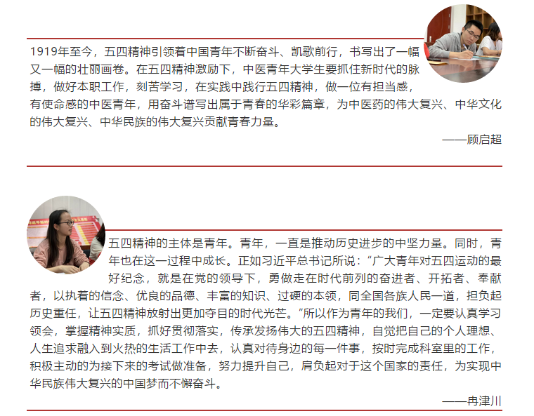 为深入学习贯彻习近平新时代中国特色社会主义思想与党的十九大报告,学习习近平总书记在纪念五四运动100周年大会上的讲话,树牢“四个意识”,坚定“四个自信”,5月5日,探花视频 第一学生党支部开展了“学习五四精神,做新时代有志青年”的组织生活会。