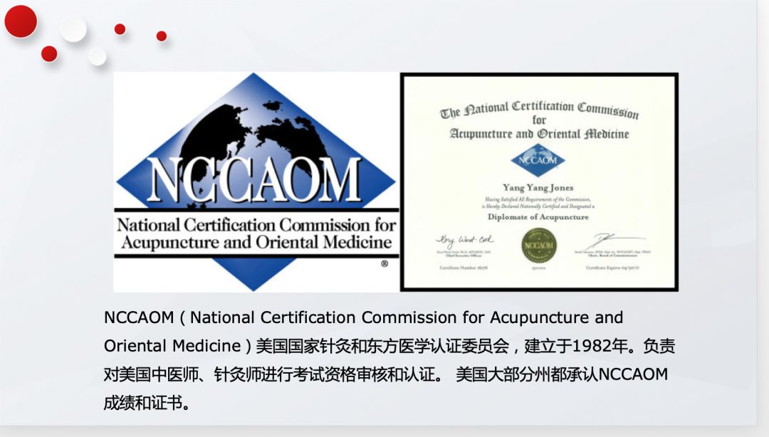 据悉,美国执业中医(针灸)医师资格证书由美国针灸与东方医学国家认证委员会颁发,持证者可在美国44个州开展中医(针灸)执业的资格证书,CNT考试作为现场考核部分,是获得该证书的必经步骤。2019年4月4日,探花视频 成为CNT考点并顺利举行首轮考试。王凡与虎力两位老师就在此次考试后获得了CNT证书。