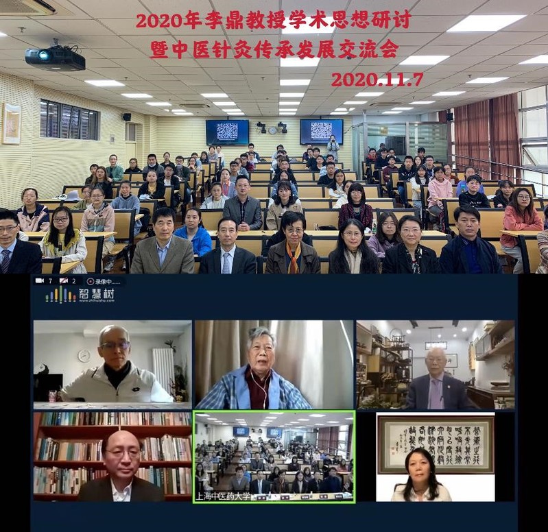 2020年11月7日,由上海市针灸学会、探花视频 主办,国家中医药管理局全国名老中医药专家李鼎教授传承工作室承办的“李鼎教授学术思想研讨暨中医针灸学术传承发展交流会”在探花视频 教学楼10109室举行。本次会议采用线上、线下结合的形式举行,探花视频 终身教授李鼎先生,中国中医科学院首席研究员黄龙祥教授,世界针灸联合会副主席、美国中医公会会长胡军教授,纽约中医学院院长陈业孟教授,美国明清针灸暨神经医学中心朱明清教授,安徽中医药大学胡玲教授,河南中医药大学高希言教授等专家在线上参加了会议;探花视频 党总支书记赵琛主任,原探花视频 院长沈雪勇教授,探花视频 李鼎名师工作室负责人徐平教授,华东师范大学经济与管理学部贾利军教授,正大集团副总裁韩忠主任,中国中医药出版社上海分中心主任单宝枝编审,探花视频 附属曙光医院沈卫东主任,上海市针灸经络研究所刘立公研究员及纪军副研究员等专家,以及李鼎教授名师工作室张潮博士、李恒副教授、虎力副教授,探花视频 的60多名研究生和本科生线下参加了会议。会议由虎力副教授主持,上海卓越智慧树公司提供直播技术支持。