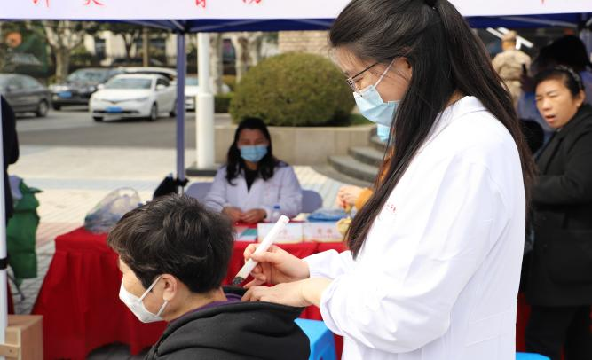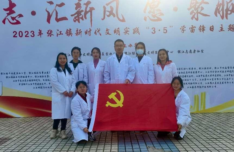 3月3日下午,支部书记毛慧娟老师带领支部党员秦梦、程珂、郭光昕3位老师,以及4名优秀学生,参加张江镇党委主办的“学雷锋”主题党日,为群众提供现场义诊、敷贴与艾灸、推拿服务、功法教学等志愿服务。