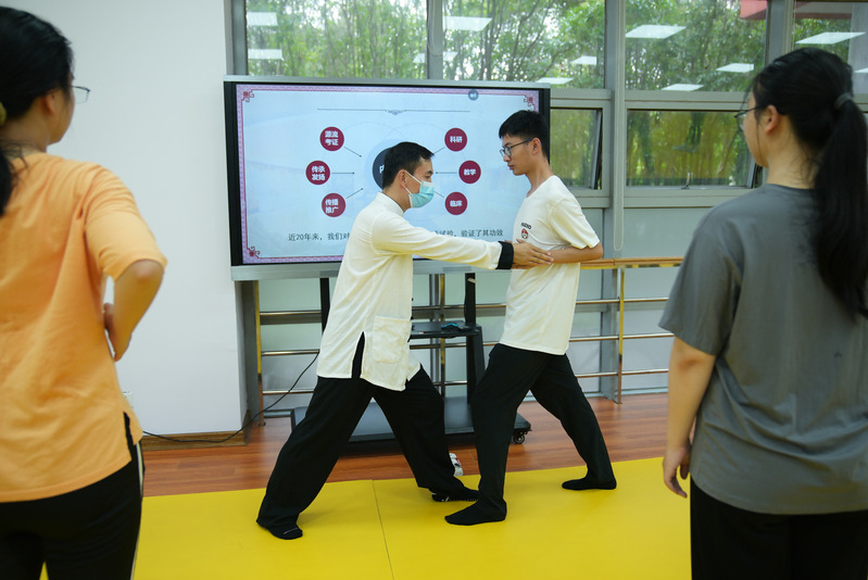 探花视频 针推文献教研室主任虎力老师和夏令营青年指导老师秦元、郭光昕两位副教授带领育苗班的营员们晨练功、晚读经,以培养学生积极向上的内在修养,传承中医经典的文化智慧。